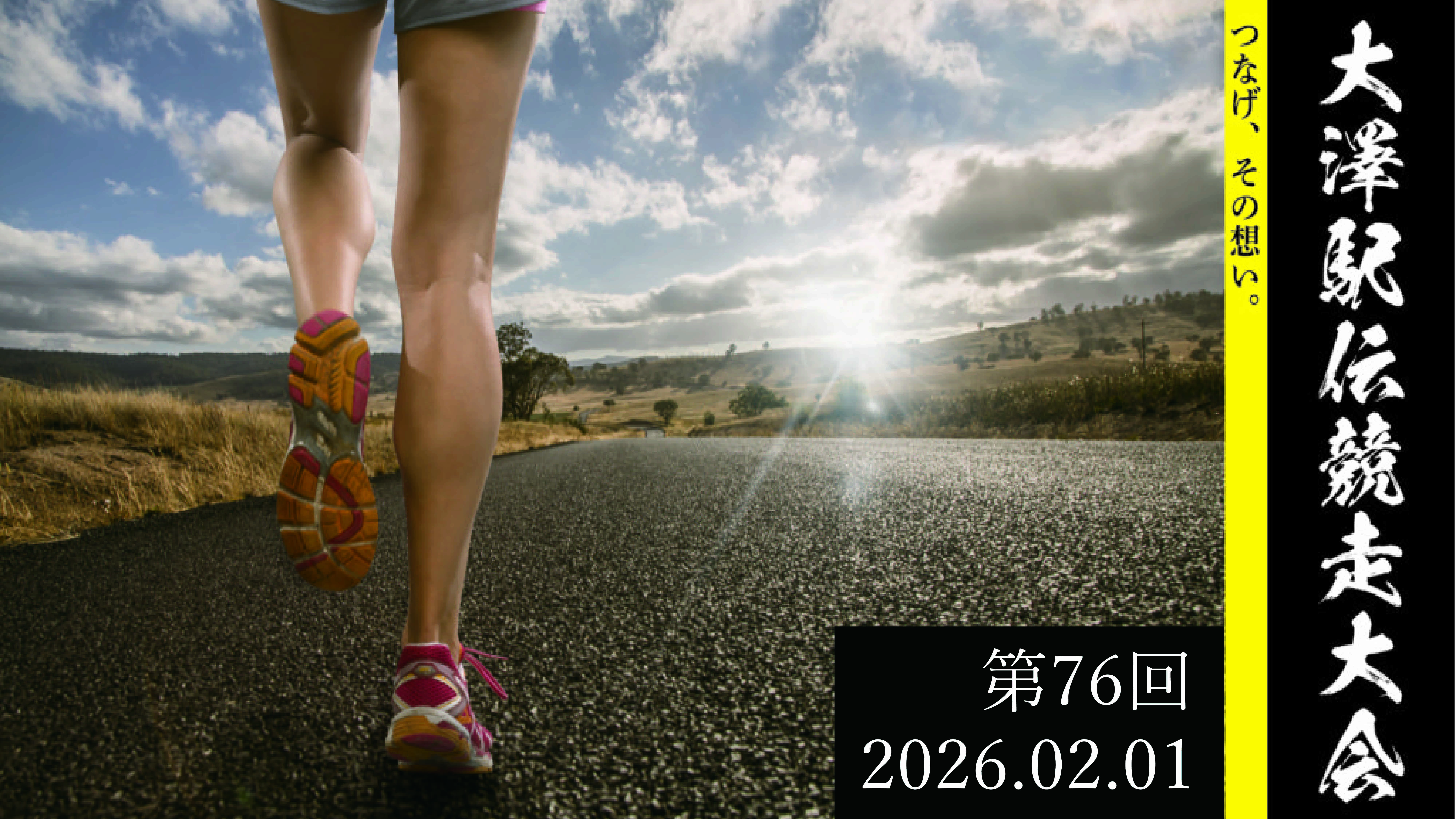 NEWS お知らせ NEWS 本日より申込開始です! 2025年12月1日 第76回大澤駅伝競走大会開催のお知らせ 2025年11月13日 大会結果 2025年2月3日 本日開催いたします 2025年2月2日 View More ABOUT 開催要項 RESULT 歴代成績ENTRY 申し込み大会への参加申し込みはこちらからお願いします。 「参加を申し込む」ボタンより、お進みください。 参加を申し込む SUPPORTER 協賛団体SUPPORTERS